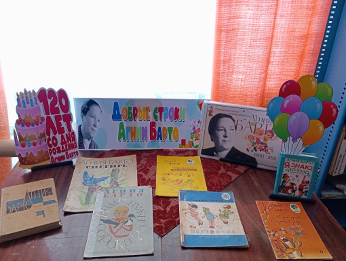 В дни праздника в библиотеке представлена тематическая выставка «Добрые строки Агнии Барто», позволяющая вновь прикоснуться к прекрасному миру детских сказочных историй и нежных рифм. Ведь чтение Барто — это возвращение в беззаботное счастливое детство, которого нам порой так не хватает в повседневной взрослой жизни.