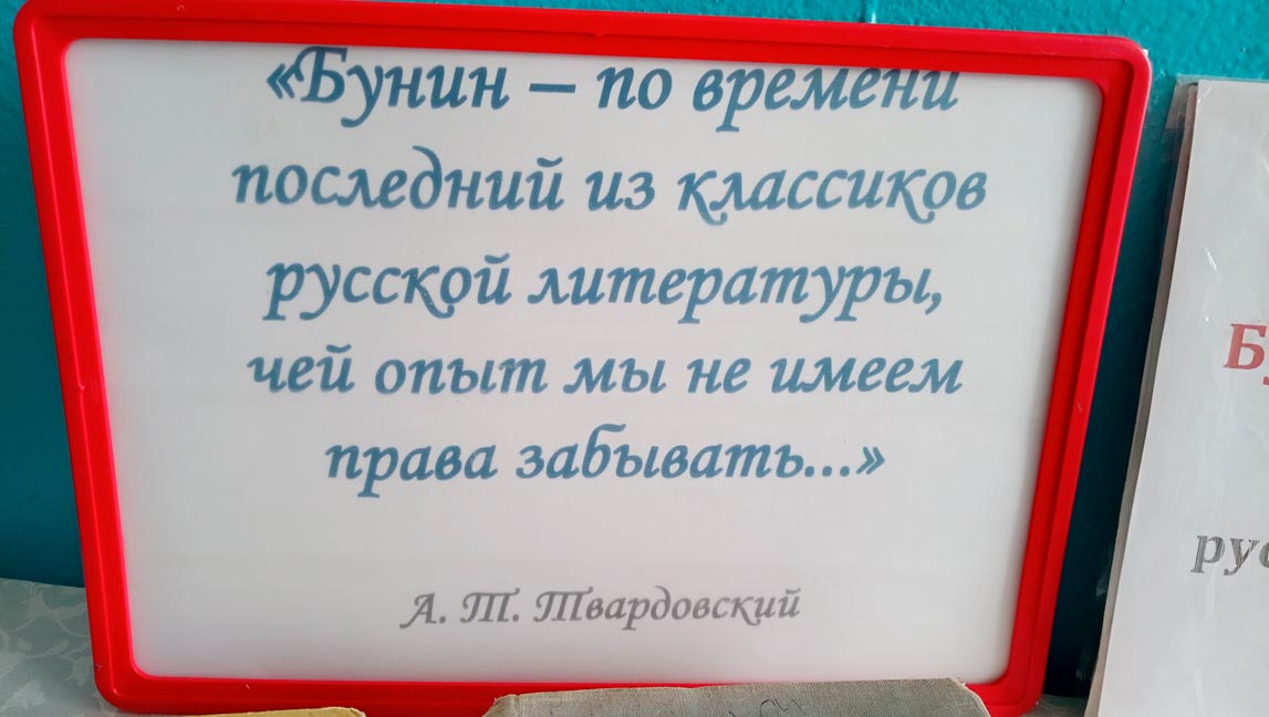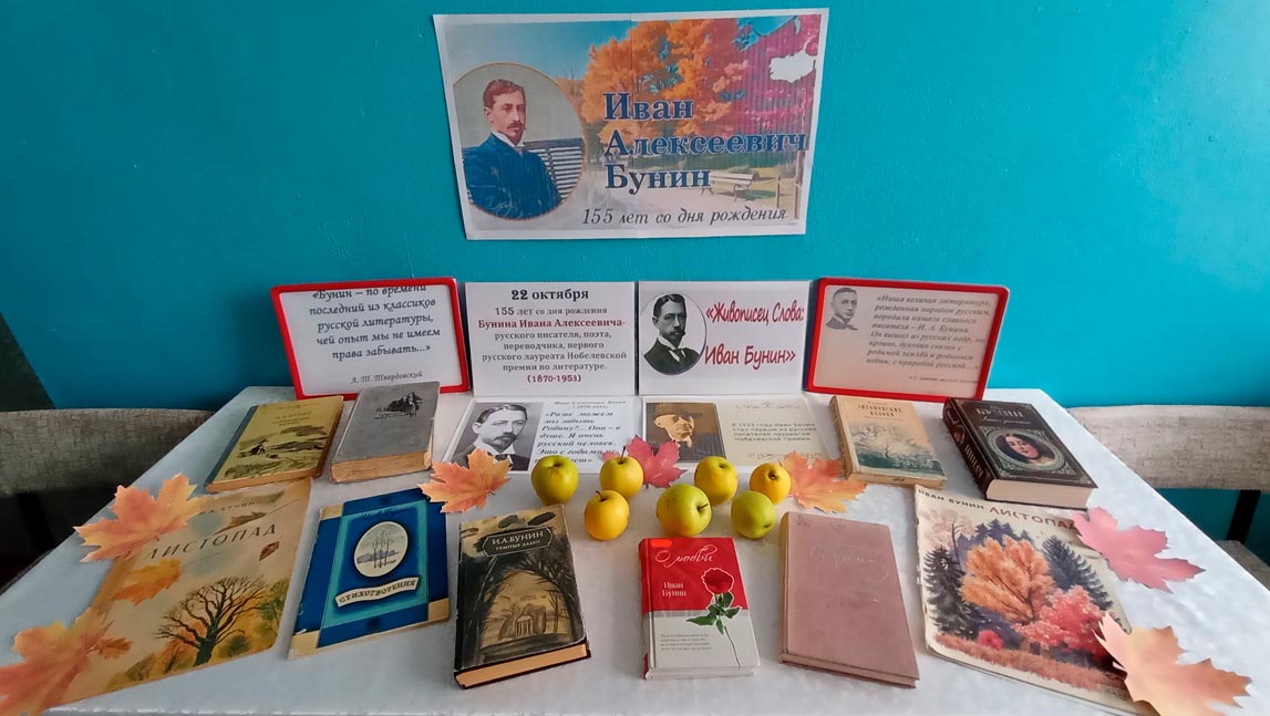 К мероприятию была оформлена книжная выставка «Живописец слова: Иван Бунин», проведен обзор литературы.
