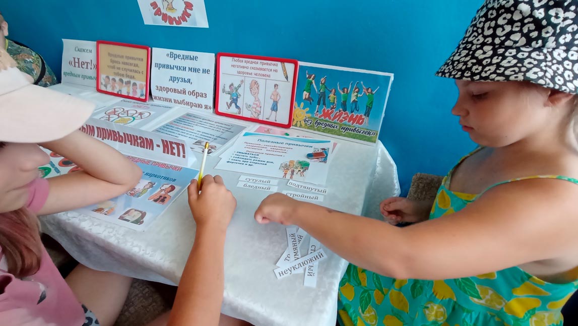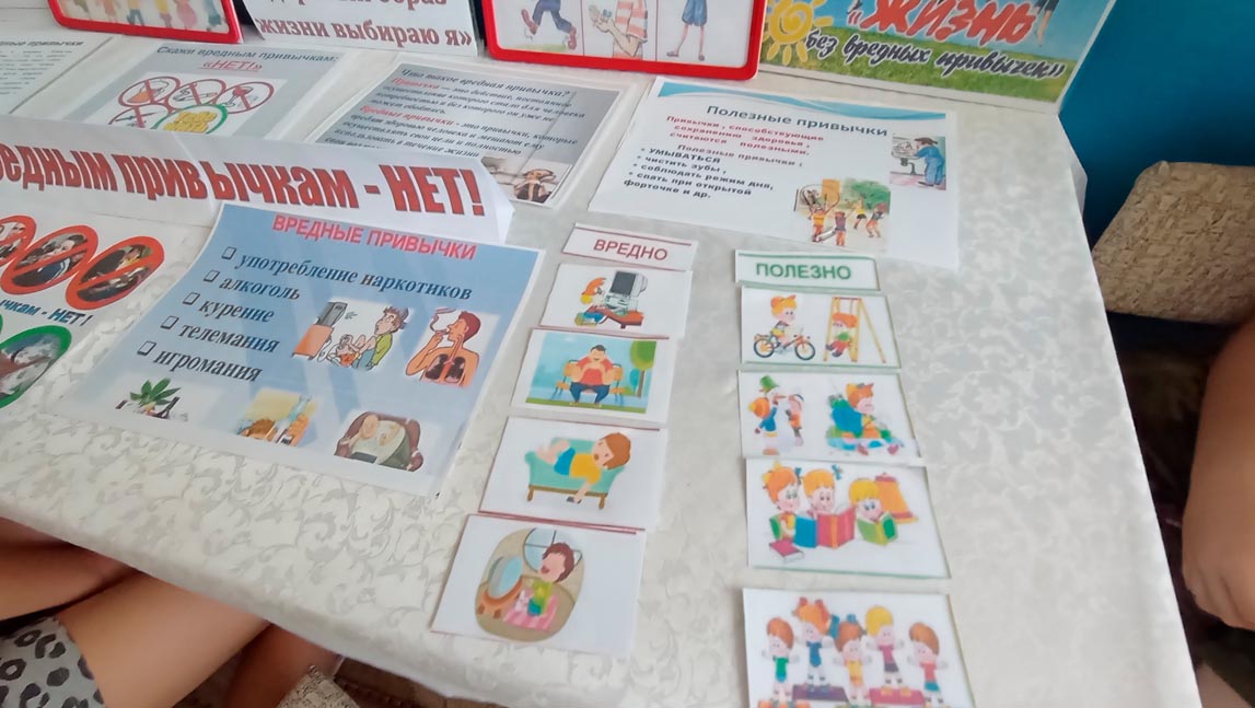 Все вместе обсуждали вредные привычки, характерные для их возраста: не соблюдение режима дня, любовь к вредной еде, привычке грызть ногти, долго сидеть у телевизора, читать лежа, разговаривать во время еды, долгое «залипание» в мобильных телефонах, не соблюдение гигиены и неряшливости. Наиболее опасное влияние на здоровье оказывает употребление алкоголя, наркотиков, табака.