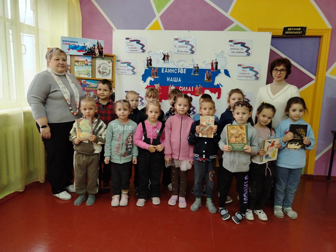 Библиотекари познакомили детей с историей праздника, рассказали о роли Минина и Пожарского в объединение нашей страны.