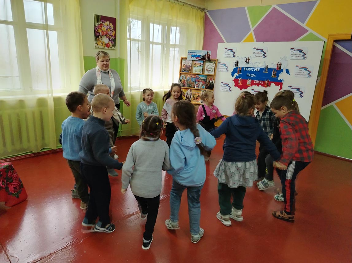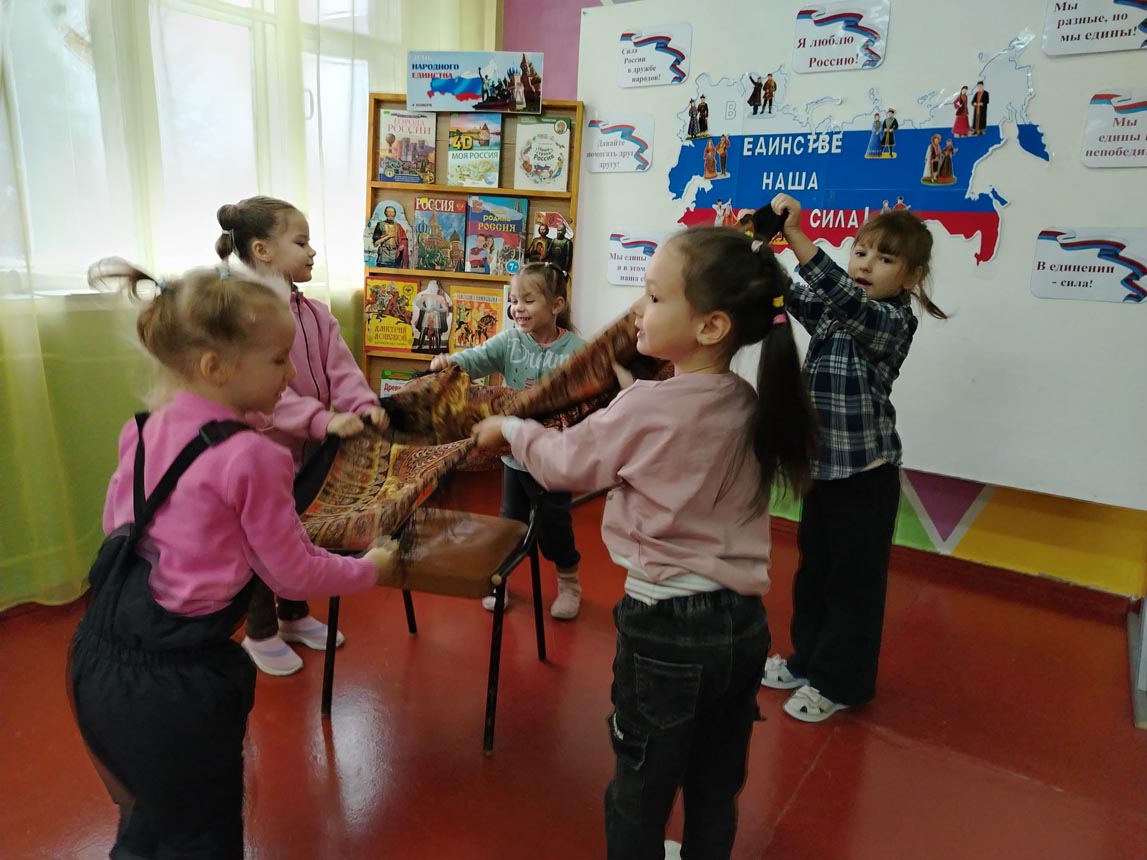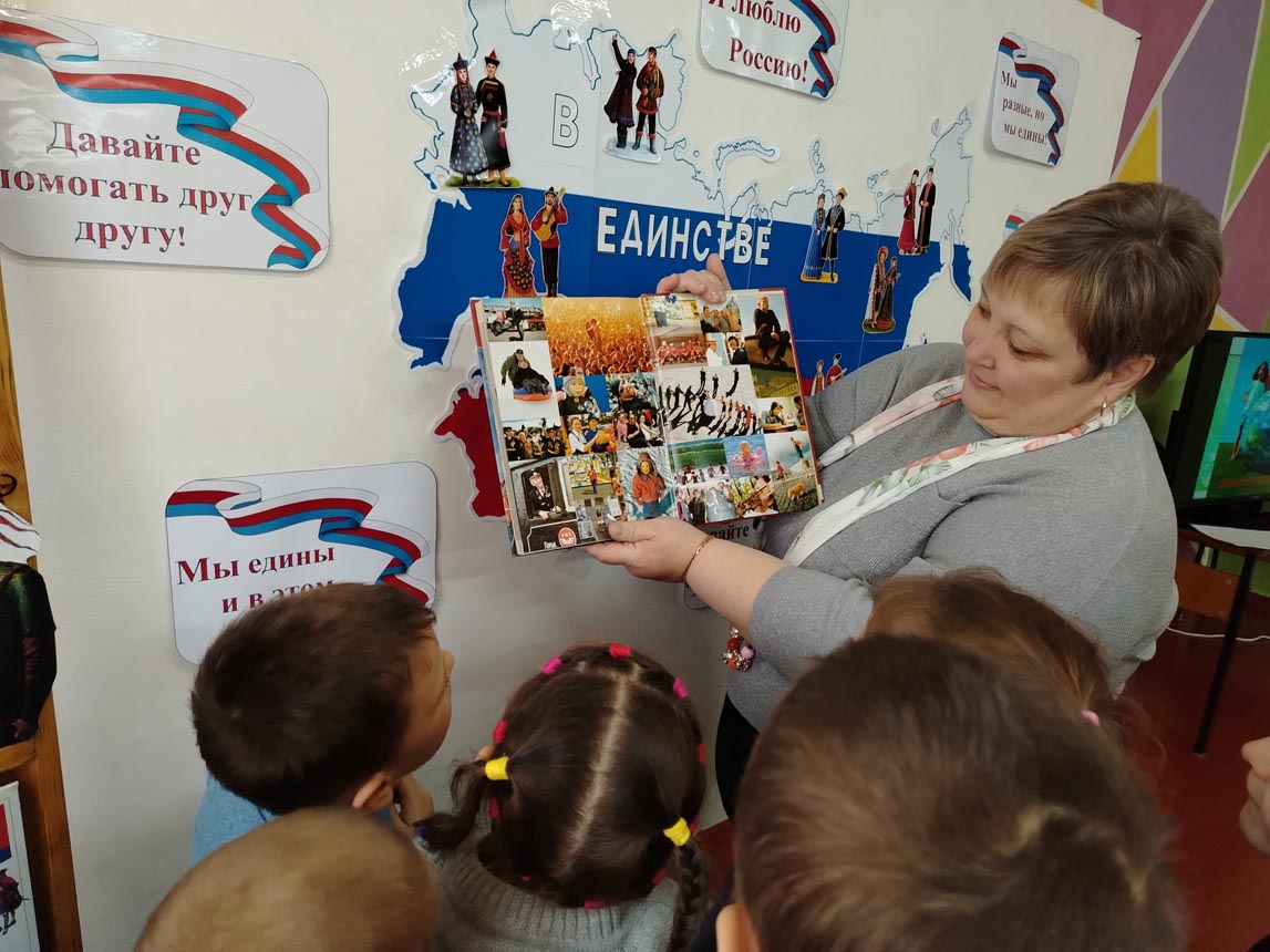 Дошкольники узнали о том, как велика, красива и богата ресурсами наша страна. Познакомились с народами, населяющими нашу страну, национальными костюмами, обычаями, кухней. Дети играли в национальные игры народов, населяющих нашу великую страну.