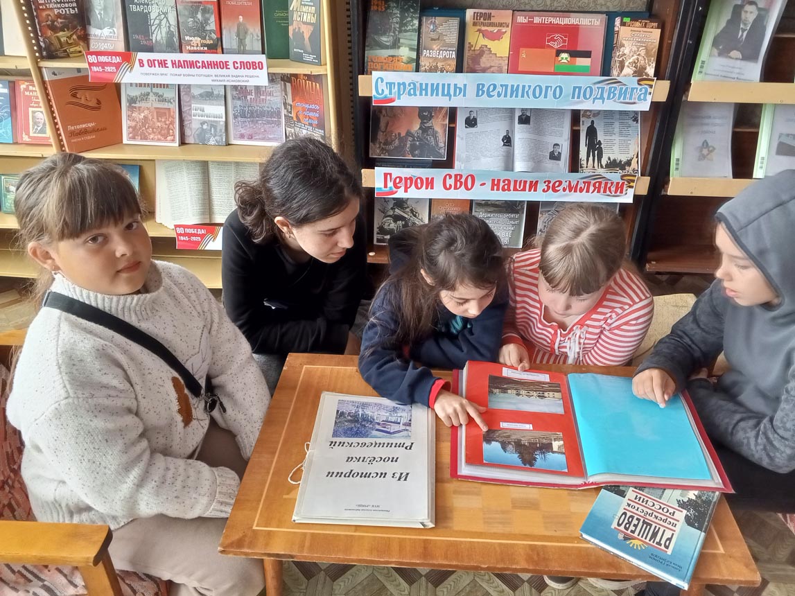 Участники мероприятия совершили небольшое путешествие по страницам истории родного посёлка. Ребята узнали, когда был основан наш посёлок, кто были его первые жители, чем они занимались и какое количество населения проживает на его территории сейчас. Заведующая библиотекой познакомила детей с накопленным в библиотеке материалом по краеведению и показала тематические папки, альбомы: «Летопись родного посёлка», «Из истории посёлка Ртищевский», «Память и гордость нашего посёлка», «Никто не забыт, ничто не забыто». Продолжилось мероприятие показом слайд-презентации, что позволило полностью окунуться в историческое прошлое села и увидеть, каким оно было и стало сейчас, познакомиться с его достопримечательностями, с красотой природы родного края.