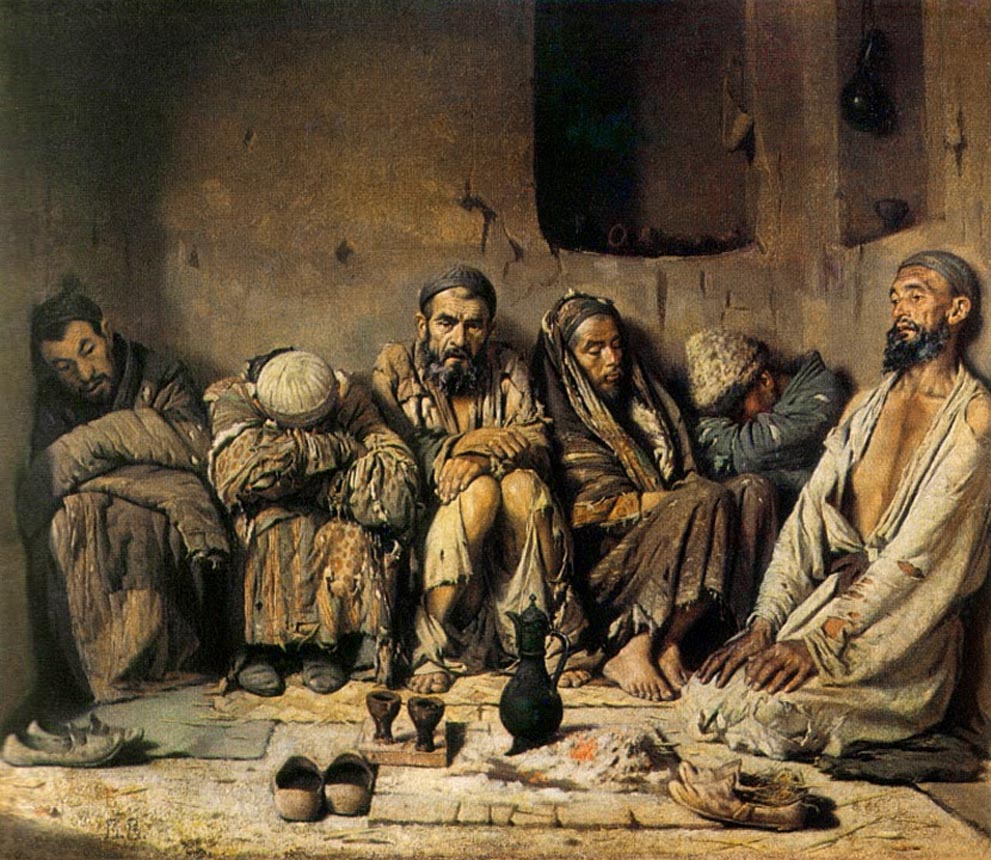 Первое большое путешествие Верещагин совершил в 1863 году — на Кавказ. Здесь он останавливался в городе Шуши в Нагорном Карабахе, наблюдал за жизнью местных народов, изучал их обряды и традиции, писал этюды.