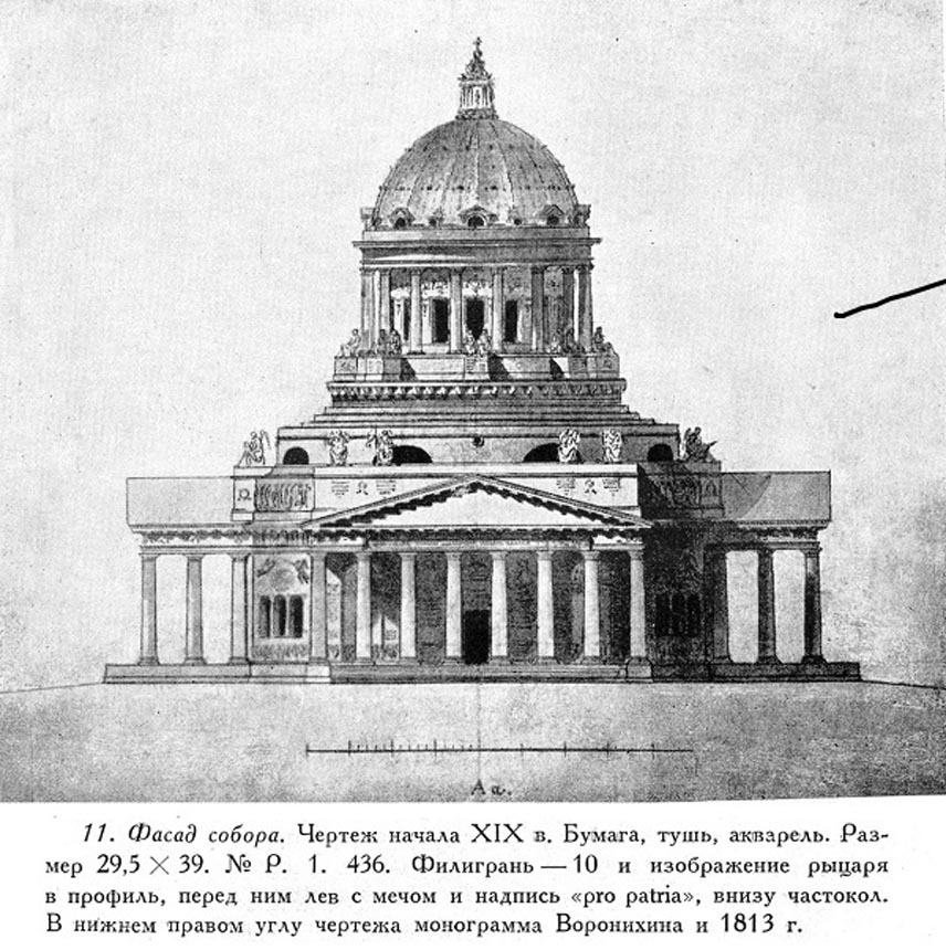 В особенности Воронихин прославился проектом и сооружением собора Казанской Божией Матери в Санкт-Петеpбуpге. Закладка собора состоялась в 1801 году, а окончен собор в 1811 году. По случаю освящения этого храма Воронихину были пожалованы орден Св. Анны второй степени, украшенный бриллиантами, и пенсия.